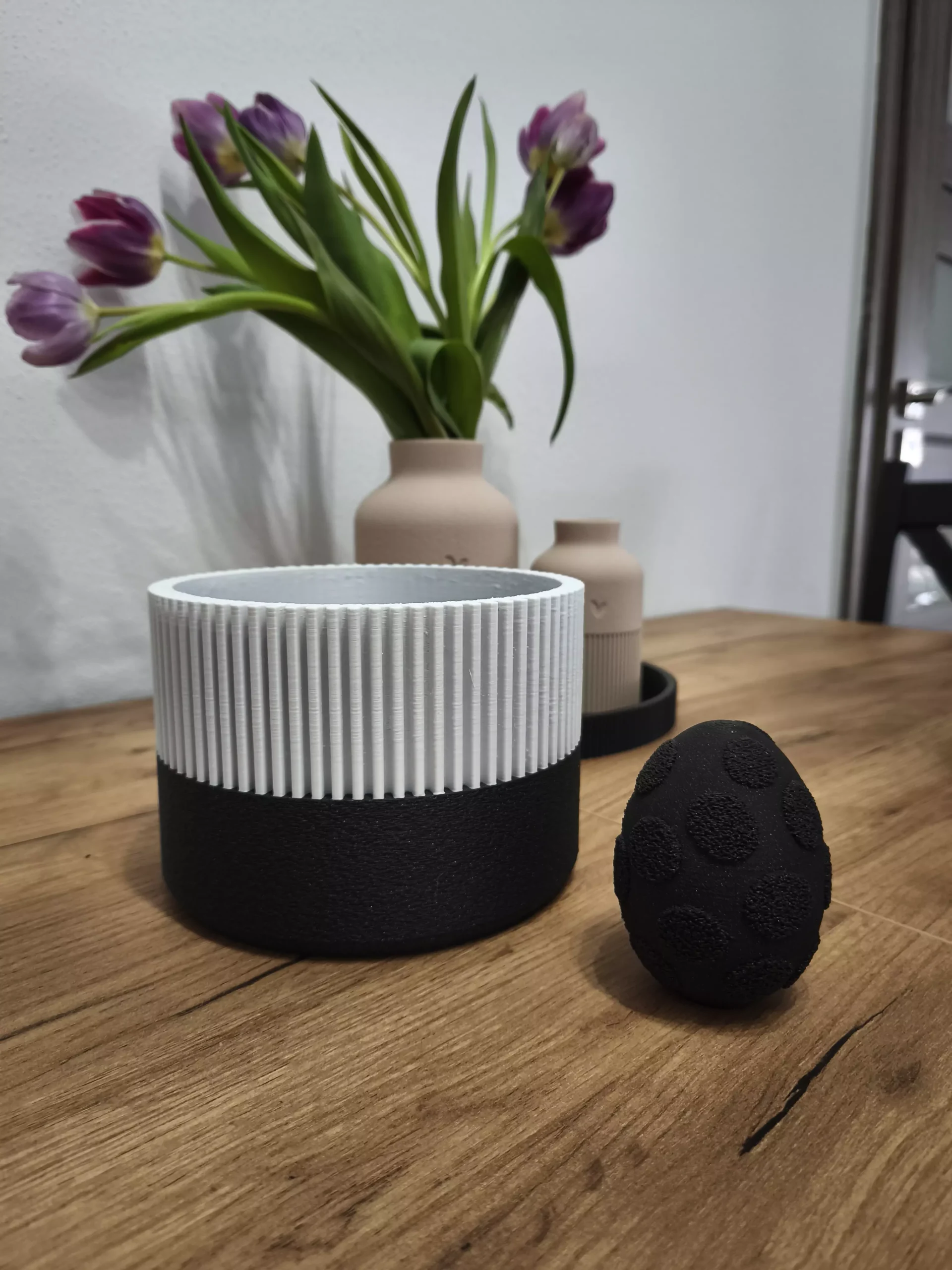 Dizajnový štýlový čierno biely kvetináč