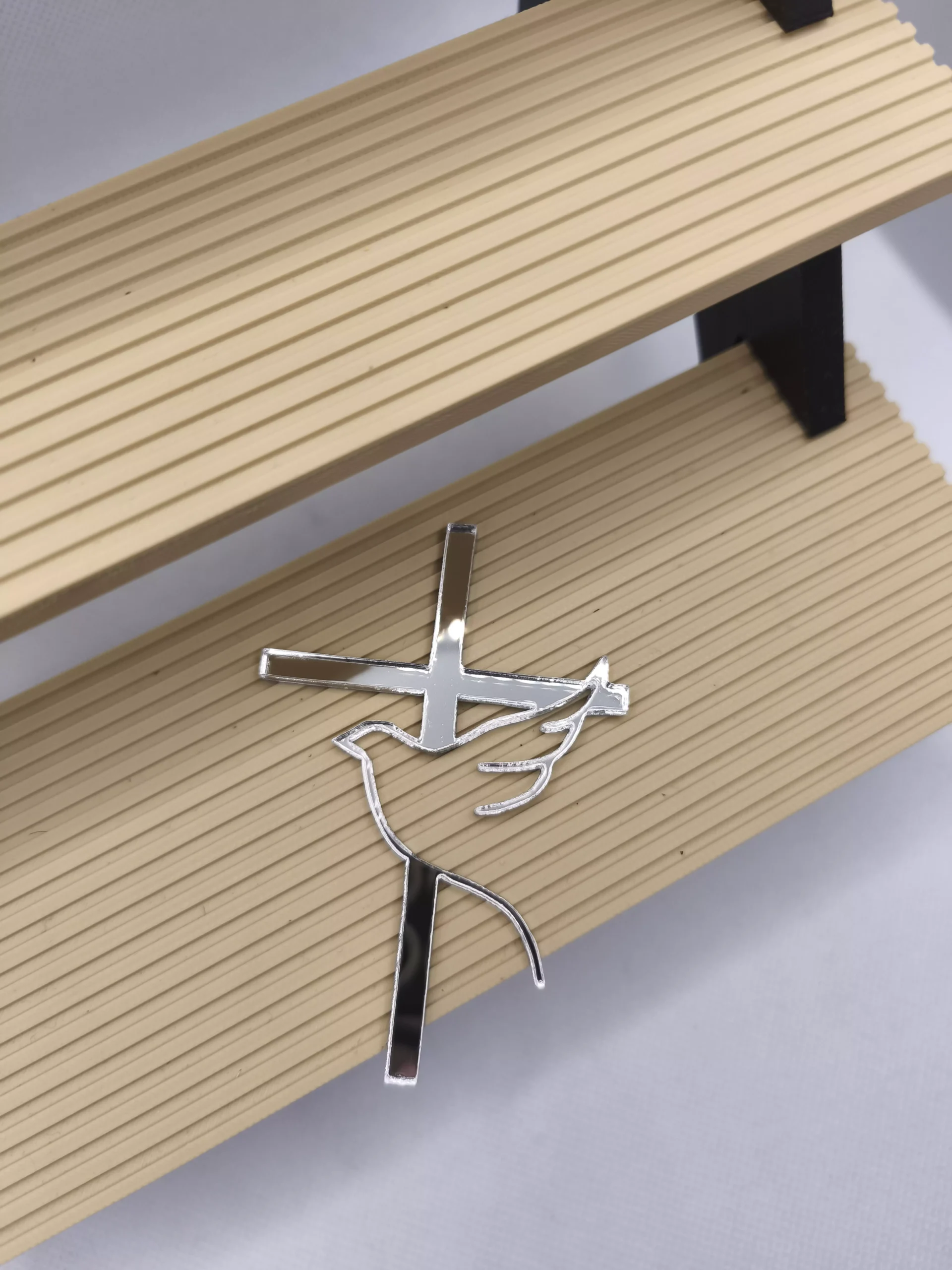 Strieborný zrkadlovy križik s holubicou na predok torty